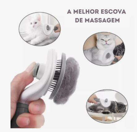 Um dos maiores destaques desta escova é o seu sistema auto-limpante, que facilita completamente o processo de higienização após o uso. Basta pressionar o botão frontal para que os pelos acumulados se soltem da superfície, permitindo que você os remova em segundos — sem precisar tocar diretamente nos fios, sem fazer sujeira e sem perder tempo. Essa característica transforma a rotina de cuidados, deixando tudo mais rápido, prático e eficiente, ideal para quem tem pouco tempo no dia a dia ou pets que soltam muito pelo.